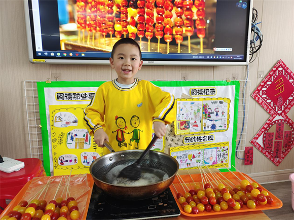 采摘结束后,孩子们带着满满的收获回到了幼儿园。这些新鲜的番茄成为了创意工坊的原材料,大班的孩子们研究起了“番茄的72变”。他们尝试将番茄与其他水果、蔬菜搭配,制作出了粉色果汁、开胃小食等美食。在熬煮番茄汤的过程中,孩子们还观察了气泡的变化,体验了气体蒸腾的自然现象。