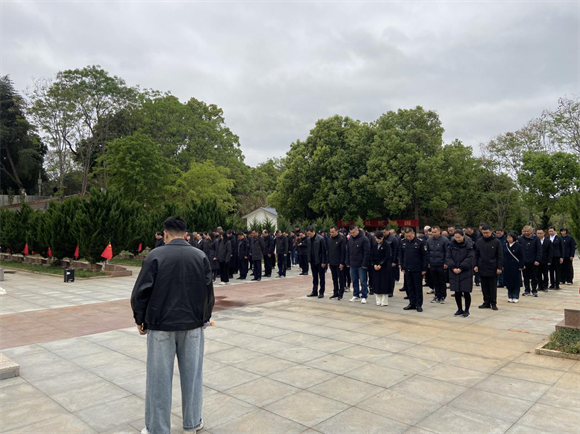默哀结束后,党员代表邝平林同志走上前,带领全体在职党员庄严举起右手,铿锵有力地宣读入党誓词。每一个字句都如同烙印,深深镌刻在每一位党员的心中,再次唤醒他们对初心使命的坚守,对党忠诚、为人民服务的坚定信念在这一刻得到了升华。随后,党员们手持菊花,依次缓步走向革命烈士纪念碑,将手中的鲜花轻轻摆放在碑前,以此表达对先烈的深深敬意与无尽怀念。他们环绕革命烈士纪念碑一周,目光凝视碑文,默默追忆那些英勇牺牲的英雄事迹,感受他们舍生取义、无私奉献的伟大精神。这一圈行走,不仅是对先烈的致敬,更是对自身责任与担当的重申,对英雄梦想的坚定承诺。