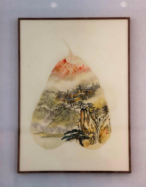 值得关注的是,安吉县梅溪镇棲真禅寺菩提叶画为湖州市第九批非物质文化遗产代表性项目,释吟秋(马金虎)为安吉县第五批非物质文化遗产项目代表性传承人。菩提叶画作为兼具传统历史传承与国际文化艺术价值的独特门类,拥有广泛的影响力和全球知名度。其创作过程严格遵循采叶、净洗、防蛀、作画等十余道工序,每一笔、每一划都承载着匠人之心。通过非遗进校园、文化走亲等多样化活动,菩提叶画已逐步走进大众视野,成为安吉文化传播的重要载体。在“文旅+非遗”融合发展的有力推动下,这一古老艺术正焕发出蓬勃的新生机。