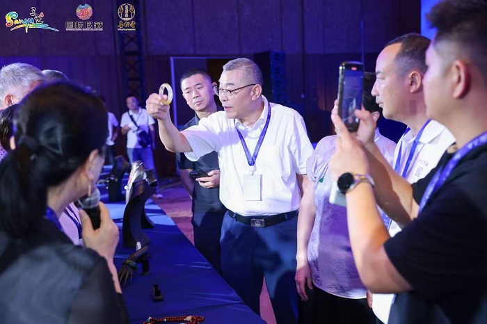 开幕式现场,专业模特华服加身,演绎传世珠宝的流光溢彩;古筝雅乐与千年文物相映成趣,营造出沉浸式文化氛围。系列活动“对话收藏家”“文化科普讲堂”等兼顾藏家交流与青少年美育启蒙,拓展艺术传播的广度与深度。三亚市政府相关负责人强调,本次活动是“旅游+文化”发展战略的延续,依托海南自贸港政策红利,将进一步推动民间艺术品走向市场化、国际化,助力三亚打造具有全球影响力的文化交流枢纽。
