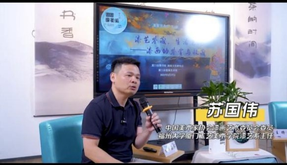 苏国伟就“漆画如何从艺术殿堂走向日常生活”发表了自己的见解。他指出,尽管漆画在公共艺术领域已取得成就——如进入人民大会堂、党史馆等重要场所,证明了其艺术价值,但在进入普通家庭方面仍面临认知度不足、创作周期长、成本较高等挑战。他认为,漆画具有风格适配性强、材质美感高级、物理耐久性好和精神内涵丰富等独特优势,可以适配不同家装风格,完全具备融入家居空间的潜力。他相信,通过社会各界的共同努力,漆画不仅能点亮国家殿堂,更将深入千家万户,成为点缀生活、涵养美育的重要载体。