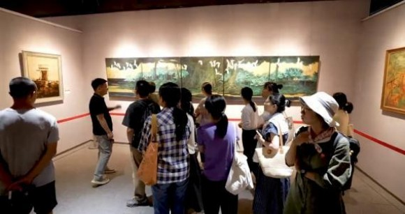 “圕圕围茶派”闽南文化阅读推广项目是厦门市图书馆与厦门市闽南文化研究会共同打造的阅读推广品牌,该项目以闽南文学艺术鉴赏为主题,结合“围炉煮茶”等年轻人喜爱的休闲方式,带领读者沉浸式体验闽南文化的魅力。此外还特别设置了艺术导览环节,现场读者来宾在苏国伟教授的带领下,参观了“漆园雅集——当代漆画艺术家群展”展览陈列。