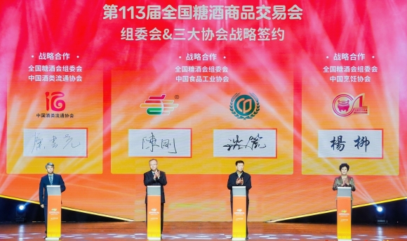 在与会嘉宾的见证下,行业协会及南京市贸促会领导共同点亮象征可持续未来的“低碳之树”,彰显了糖酒会与食品行业响应国家“双碳”战略、推动绿色转型的决心。全国糖酒会组委会与中国食品工业协会、中国烹饪协会、中国酒类流通协会共同签署合作备忘录,携手强化糖酒会在食品、餐饮、酒类领域的“新品首发、趋势引领”功能,为链接产业前沿、激活消费潜力构建更强大的支点,充分释放长三角消费市场的巨大潜力。