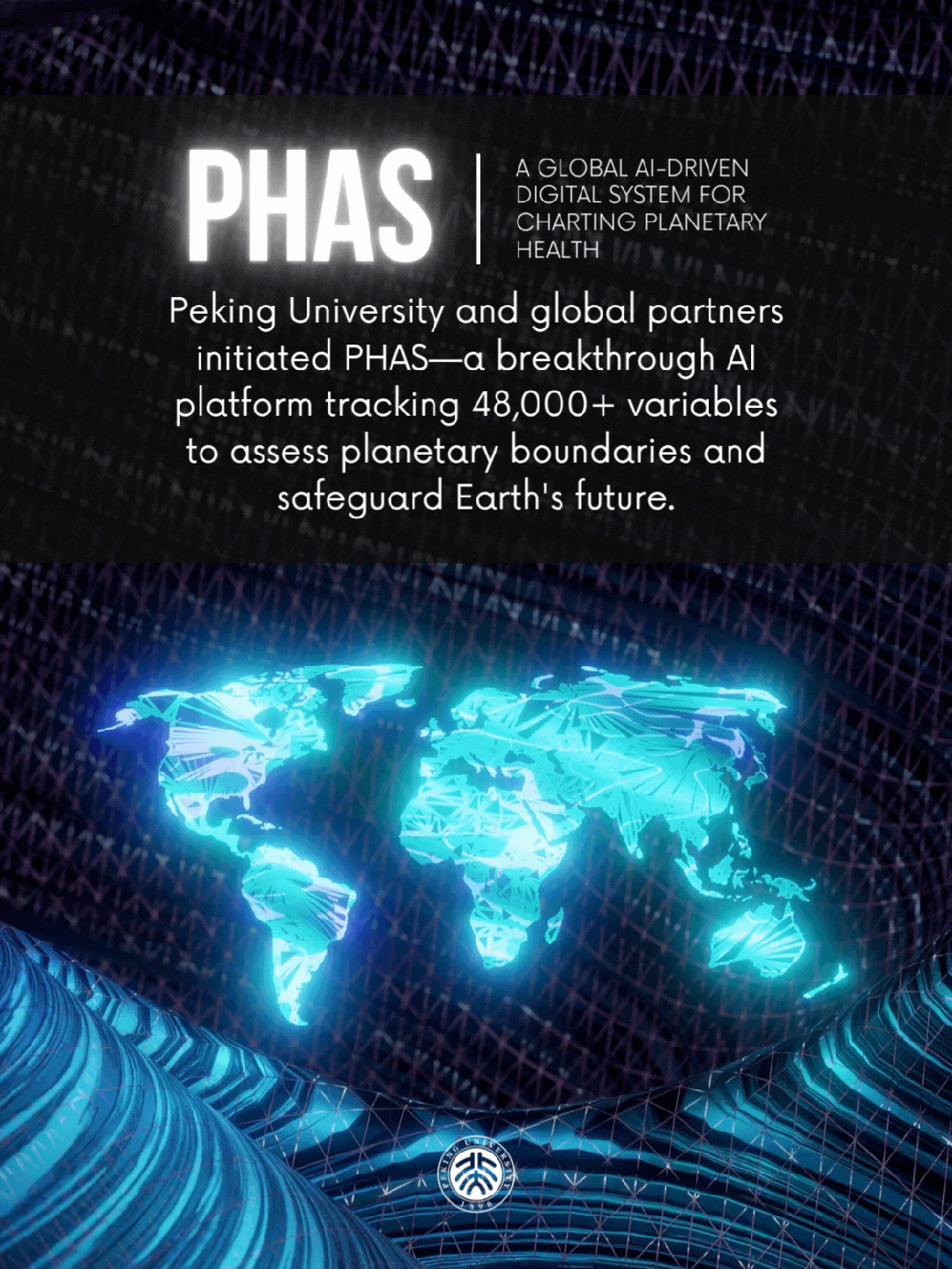 In October 2023, Peking University GHD constructed a Planetary Health Axis System, or PHAS, an AI-driven large dynamic global digital system aiming to track human civilization footprints in relation to the well identified Planetary Boundaries. PHAS builds on four major axes—human health, species health, environment health and societal health—which are quantified by over 48000 key variables across the planet. Conceived as a“digital compass,” this system aims to steer us through planetary health challenges of our time.