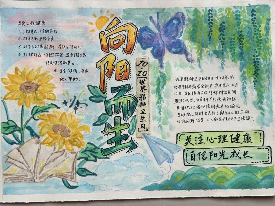 海报创作展览,以艺载情传递心声。为让学生更深入参与到活动中,该校还举办了世界精神卫生日主题海报及手抄报创作比赛。学生们积极响应,充分发挥想象力与创造力,用色彩、文字和图案表达对心理健康的理解,展现自我接纳、积极调适的心理态度。比赛结束后,优秀作品在校园内进行集中展览,不仅为学生提供了展示才华的平台,更让大家在欣赏作品的过程中,进一步加深对世界精神卫生日的认识,传递积极向上的心理能量。