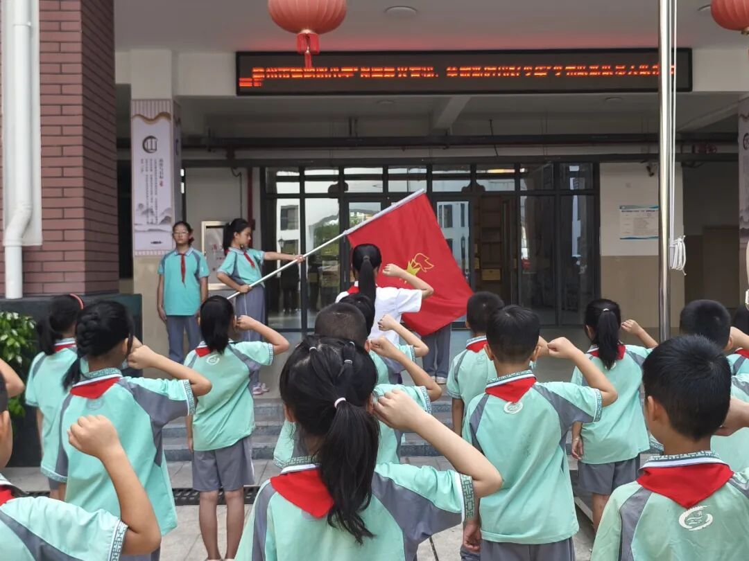 仪式现场庄严有序。伴随着激昂的《出旗曲》,师生面向国旗奏唱国歌;在大队长施雅菁指挥下,全体队员齐唱《中国少年先锋队队歌》,歌声嘹亮抒壮志。大队辅导员温盛梅宣读新队员名单后,高年级队员为新队员佩戴红领巾。新队员们举起右拳,在队旗下庄严宣誓,誓言铿锵有力。少工委副主任谢晓聪寄语新队员,鼓励他们牢记誓言,争做品德高尚、本领过硬的新时代好少年。最后,全体队员在温盛梅老师带领下庄严呼号,仪式在《退旗曲》中圆满落幕。