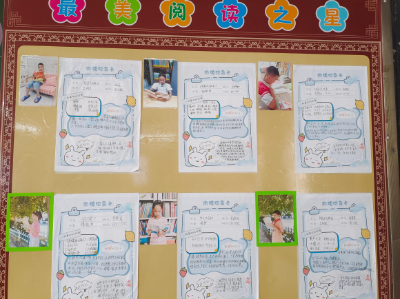 阅读之星:书香润心灵,阅读伴成长。“最美阅读之星”展示墙记录了孩子们与书为伴的美好时光。墙上整齐排列着同学们的阅读记录卡和与家长共读的照片,记录卡上详细写有阅读书目、心得体会等内容。有的孩子与家长共读温馨时光被定格在照片中,洋溢着浓浓的书香与亲情。这一板块不仅展示了孩子们的阅读成果,更营造了浓厚的阅读氛围,激励更多孩子爱上阅读、享受阅读。