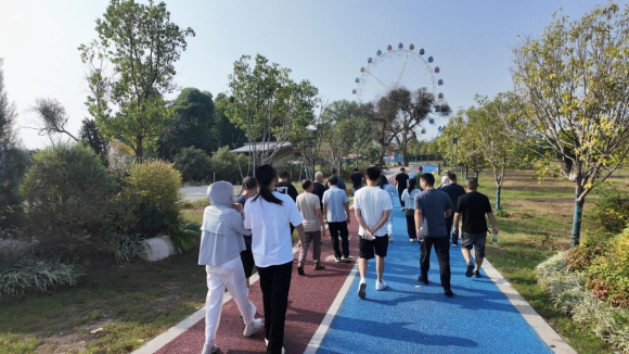 清晨的麻州生态园宛如一幅秋日油画,永丰县供销联社干部职工身着运动服,迈着矫健的步伐从生态园入口处出发。一路上,栾树摇曳、板栗飘香,细软的沙滩与潺潺流水相映成趣,职工们时而驻足拍摄秋日美景,时而互相鼓励冲刺终点,一路欢声笑语,绿意盎然的步道间洋溢着活力与温情。