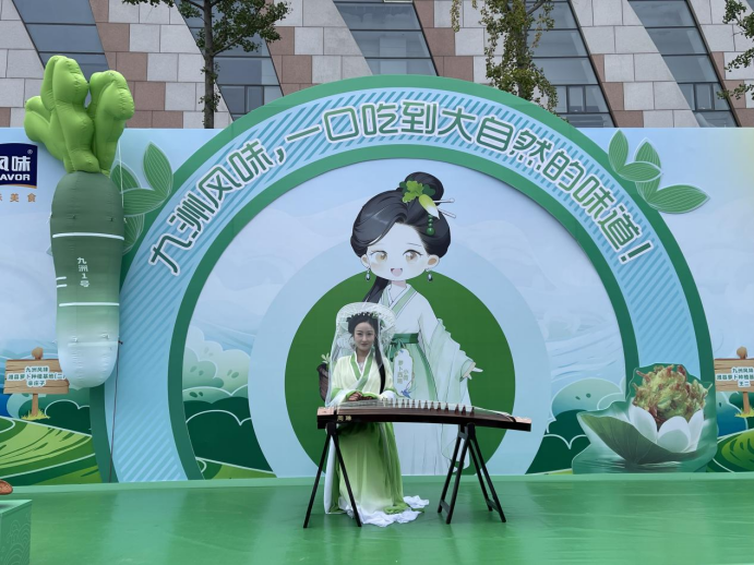 九洲风味打造的生态地标美食街共分为生态美食品鉴区、萝卜西施互动区、九州风味开园季·萝卜赠送区三个区域,市民游客穿梭其间,咬一口酥脆的萝卜丸子,再尝新鲜萝卜的甘甜,味蕾在口中完成了一场酣畅淋漓的“交响乐”。
