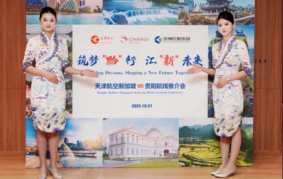 这些举措是天津航空深耕西南市场的延续与创新。自2011年在贵阳龙洞堡国际机场投放过夜运力、2016年成立贵州分公司以来,天津航空持续拓展西南地区航线网络。新加坡=贵阳航线是新天航拓展国际航空市场的重要一步,未来,新天航将继续优化运力投放与服务体验,为促进区域往来交流、深化中新合作发展贡献力量。
