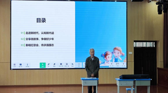 10月22日下午,江西省吉安市韶山路小学特邀吉州区关工委彭圣才老师组织开展了主题鲜明的形势道德教育主题讲座,旨在教育引领广大少先队员争当爱党爱国、勤奋好学、全面发展的新时代好少年。本次讲座聚焦“认知新时代激励佳成长”,围绕新时代的发展内涵、新时代好少年的故事印记和奏唱新时代红歌三大主题展开,让爱国主义的红色种子在少年儿童心中生根发芽。