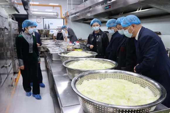 随后,刘市长深入学校食堂,细致检查食材采购溯源台账、每日菜品留样记录及餐具消毒设备运行情况。她强调,校园食品安全是底线工程,必须严格落实管理制度,严守安全防线,确保学生“吃得放心、吃得营养、吃得舒心”。