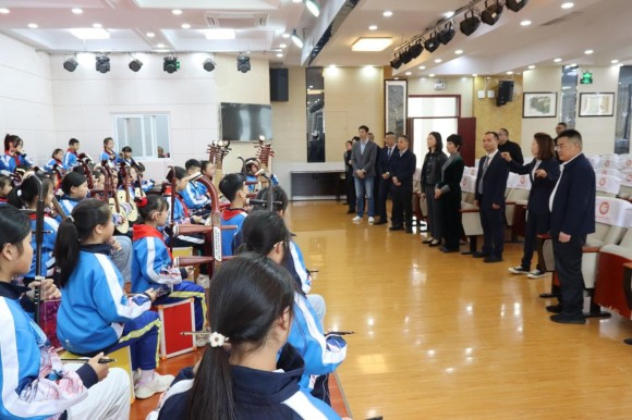 在课程成果展示环节,刘素英一行重点观摩了“七彩阳光”校本课程与三维美育课程的实施成效。千人葫芦丝演奏旋律悠扬、节奏整齐;益智器具破解现场气氛活跃,展现出学生出色的动手能力与思维素养;书画展作品充满童真与文化韵味。民乐、合唱、书法等社团活动各具特色,尤其是市级优秀社团——“爱之翼少儿民乐团”的传统乐器合奏,充分展现了学校在素质教育方面的扎实成果,赢得了调研团队的一致认可。
