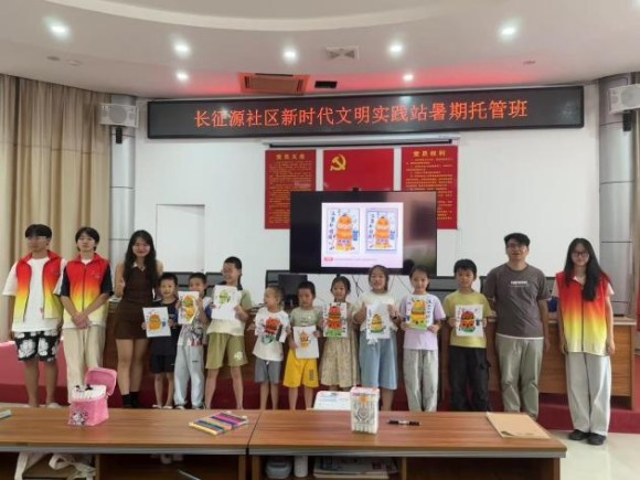 在关爱少儿方面,社区整合辖区资源,组织在职党员、大学生志愿者开设红色故事、书法绘画等暑期课程,打造“红色阅读角”与“假期托管班”,为孩子提供安全、有益的成长空间。