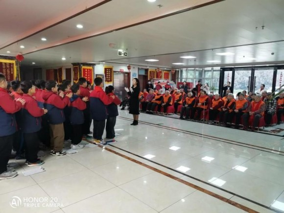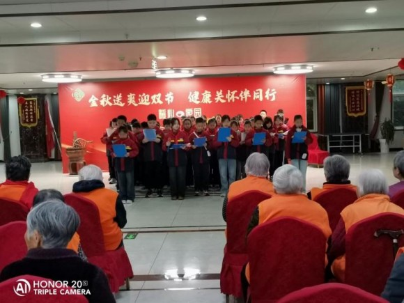 当日上午,伴随着孩子们欢快的笑声,广仁敬老院的院子瞬间充满生机。文艺展演环节,孩子们化身“小小表演者”,用精心准备的节目与老人们展开“两代人的共鸣”。朗诵《金秋唱重阳》中,孩子们以稚嫩却饱含情感的声音,勾勒出重阳敬老的美好图景。“岁岁重阳,今又重阳,不似春光,胜似春光”的经典语句在院内回荡,将传统敬老情与当下的温情场景相融,让老人们感受到节日的厚重与温暖。