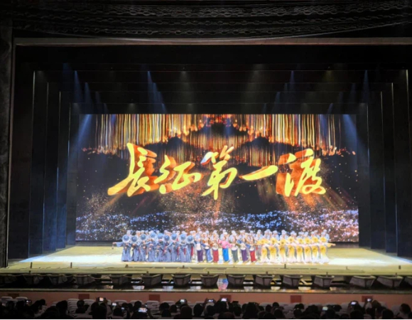 最后,党员干部一同走进了《长征第一渡》的演出现场。夜渡于都河、血战湘江、遵义会议、飞夺泸定桥、爬雪山、过草地等一幕幕革命战争场景上演,生动磅礴地再现了中国工农红军长征的艰苦历程,让大家在一场历史与未来超时空的精神对话中接受震撼心灵的红色洗礼。