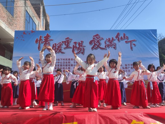 10月25日上午,仙下村村委联合于都县关爱留守儿童志愿者协会仙下分站及十余家爱心单位、商家,举办“情暖金秋,欢度重阳”主题活动。活动现场,仙下乡人民政府乡长刘大华、仙下村书记刘明等领导先后致辞,既传递乡、村两级对老年人的牵挂,也描绘家乡发展蓝图;仙下派出所所长郭祥现场开展反电诈宣传,为长辈们的财产安全保驾护航。随后的爱心授牌仪式上,村委为连续三年免费义诊的仙下中心卫生院送上锦旗,为15家爱心商家、31位爱心人士颁发牌匾与荣誉证书,并为6名孤寡老人送上捐赠物资,用实际行动诠释“老吾老以及人之老”。文艺表演环节,家家乐幼儿园小朋友带来的《百善孝为先》《中国美》萌趣暖心,吉村舞队、仙下舞队等带来的《开门红》《吉祥中国年》等节目活力十足,赢得阵阵掌声。