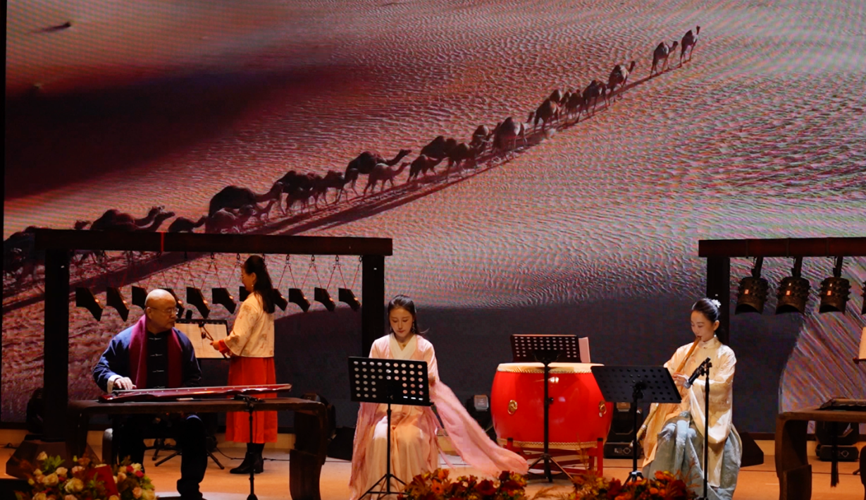 秋色在《醉渔唱晚》的乐声中悠然展开,郭怀瑾、楚昭、俞飞三位艺术家以琴、箫、琵琶交织演绎,旋律活泼而富有韵味,精准刻画出渔人泛舟江上、陶醉于秋夜美景的悠然自得。