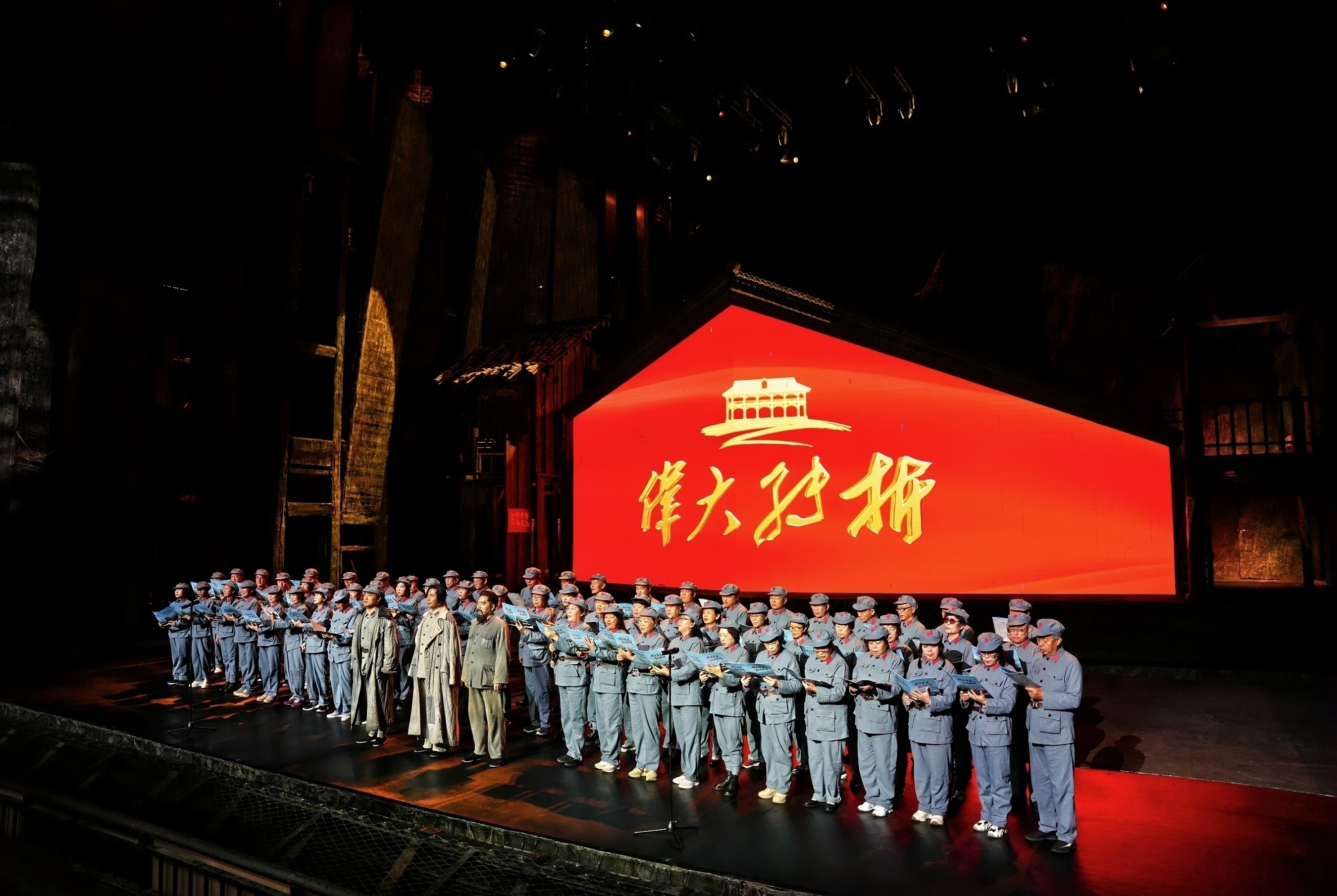 与专业演员共同表演了朗诵《七律·长征》和合唱《走向复兴》。这是《伟大转折》正式演出以来首次进行观众和演员互动表演,这一创举不仅丰富了剧目的表达,也为中老年群体提供了“从观众到参与者”的新型文化体验。
