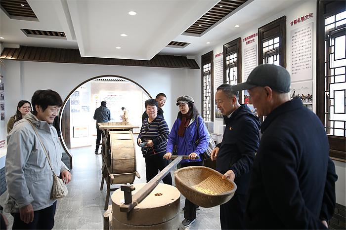 走进甘露村村史馆,一件件带着历史温度、烙有时代印记的老物件,悄然打开了记忆的闸门。老干部们情不自禁地拿起农具,轻轻抚摸,回忆往昔辛勤劳作的岁月,感慨今昔变迁。大家重温老一辈村民艰苦奋斗的岁月,感悟克勤克俭、奋发向上的优良家风,也从丰富的史料中深入了解了该村的历史沿革与文明变迁。