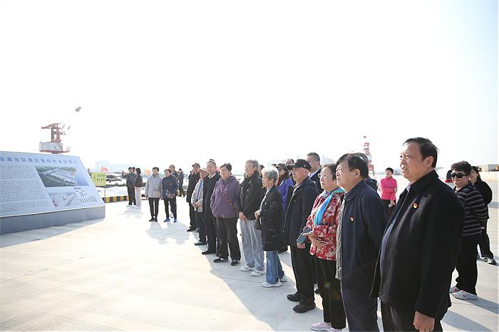 在黄码港产业园,老干部们驻足沙盘前,通过讲解,清晰直观地了解产业园的空间布局与产业规划,共同感受这片热土从无到有、由弱变强的奋进历程。大家走进黄码港作业区,近距离感受自动化码头技术与水路经济发展的蓬勃活力。