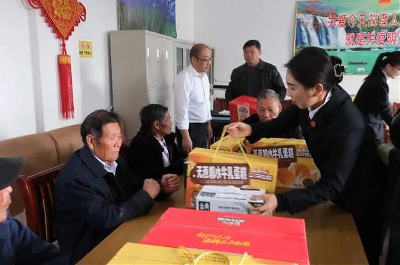 敬老院内暖意融融。法院干警们向老人们送上精心准备的重阳节礼物,并一一分发到每位老人手中。