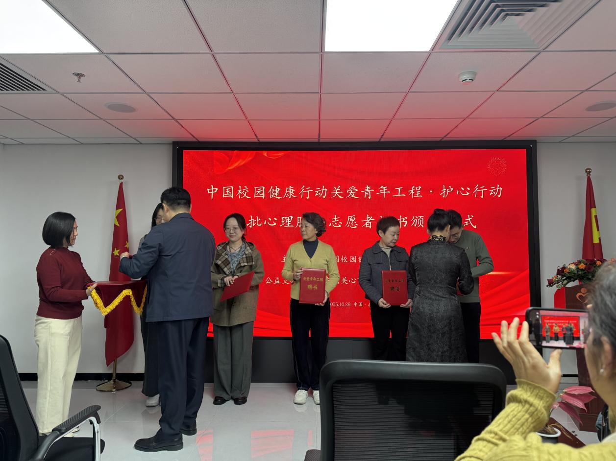 培训结束后,徐泽源主任为参训志愿者颁发了关爱青年工程“护心行动”公益心理服务志愿者荣誉证书。