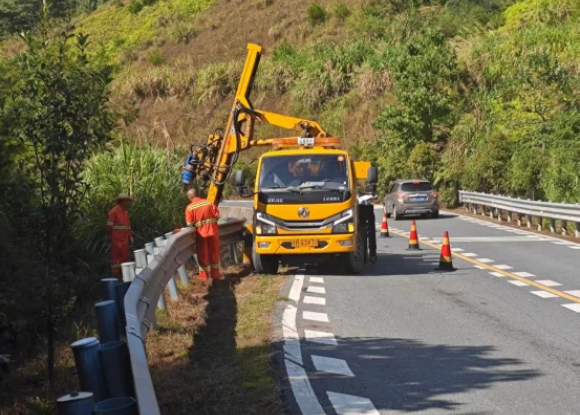 设施优化,筑牢车辆通行“生命线”。组织力量对G238沿线路段损坏、缺失的波形护栏进行全面排查修复。对损坏、缺失的护栏部件及时更换,对松动的护栏板、螺栓逐一加固;针对局部锈蚀、防护层脱落的护栏,重新涂刷防腐防锈涂层,并在护栏两端贴上反光膜,确保夜间及恶劣天气警示效果,全面恢复护栏抗撞防护和警示性能,为过往车辆筑起坚实的“安全防线”。