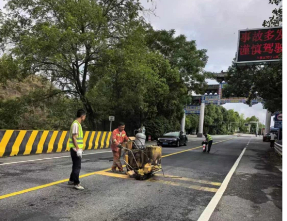 标线更新,擦亮道路安全“警示线”。针对部分路段标线磨损、褪色导致辨识度下降的问题,该分中心组织专业队伍,重点对G238线主干道、连续急弯、交叉路口等事故高发路段及标线磨损路段重新施划标线,确保车道线、边缘线、减速让行线清晰、醒目,以鲜明的视觉引导指引过往司乘安全出行。