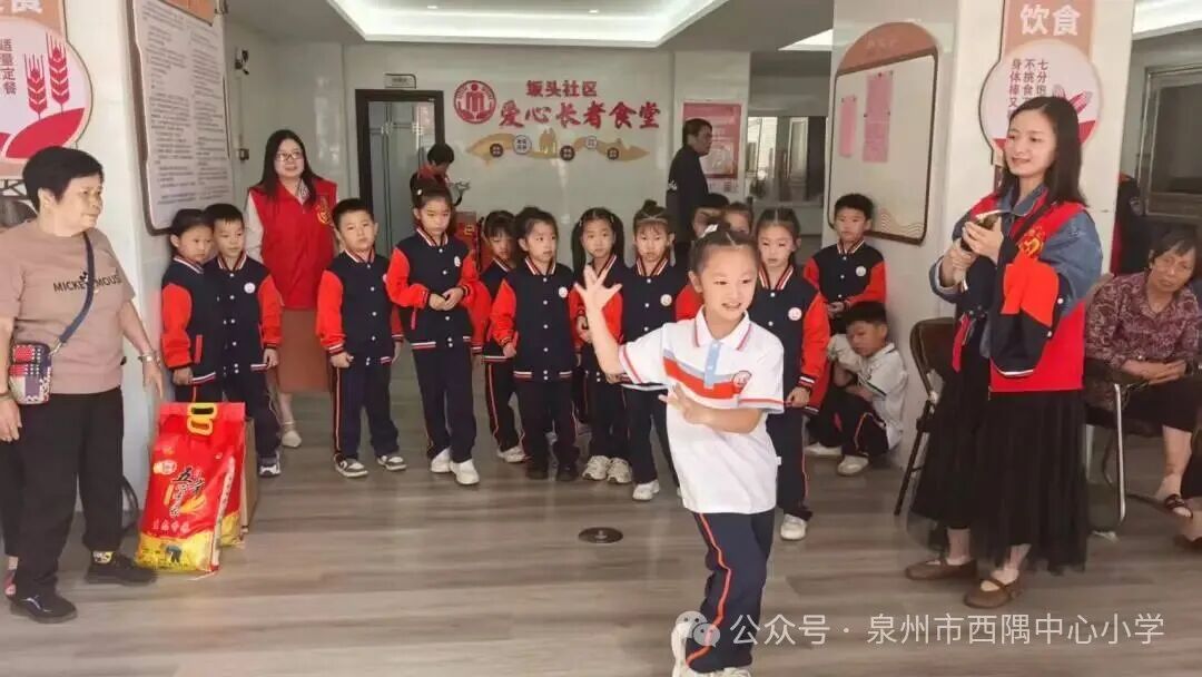 岁岁重阳,情暖夕阳。2025年10月29日上午,鲤城区浮桥街道坂头老年公寓内暖意融融,泉州市西隅中心小学坂头校区的一年级学生们,在学校党总支副书记吴文俊及多位老师的带领下,开展“情暖重阳・致敬寿星”主题慰问活动,用童真与行动传承中华尊老爱老美德。