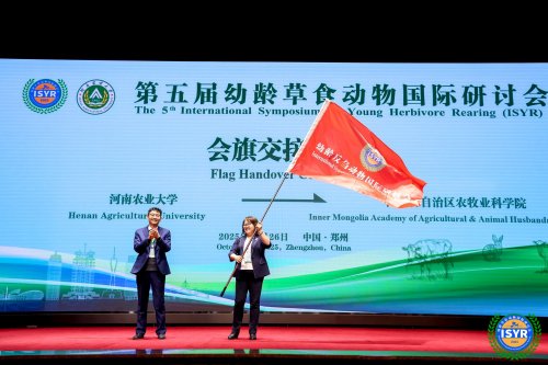 “幼龄草食动物国际研讨会”会旗由本届主办方河南农业大学交接于下一届主办方内蒙古自治区农牧业科学院。