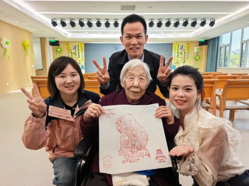 活动中,康养中心的老人们兴致高昂,展现出乐观向上的银龄风采,高新第五幼儿园中三班献上《红太阳照山河》的舞蹈,蕴含着孩子们最纯真的心意。安康博物馆带来的数字流动博物馆展示,让老人们足不出户也能“云游”博物馆,沉浸式感受地方文化魅力。木版画拓印体验环节,“福”字、“寿星”、“幸福安康”等图案最受老人们欢迎,寓意福寿安康的美好祝愿,尊老敬老的美德在互动中悄然传承。