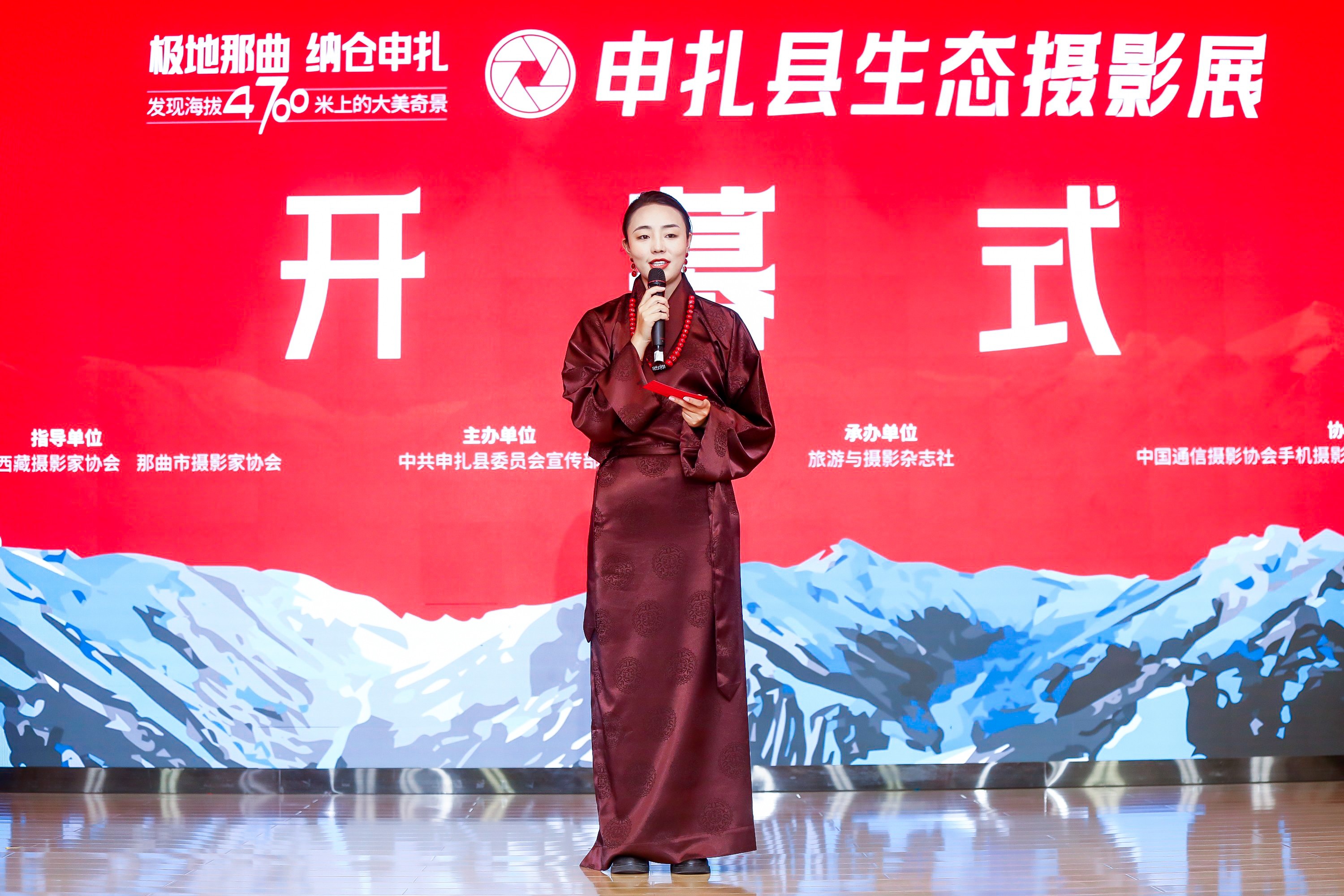 开幕式由来自申扎县融媒体中心的藏族姑娘米玛卓玛进行主持,她以生动的语言向来宾介绍了申扎的独特地理位置与丰富的自然资源,配合申扎县宣传片的展示,将大家带入这片海拔4700米的雪域高原。申扎,古称纳仓德巴,藏语意为“洁白、透明、无暇的精盐”,地处藏北高原腹地,拥有甲岗雪山、色林错国家级自然保护区等宝贵生态资源,以及尼阿底旧石器遗址、巴扎服饰等文化遗产。