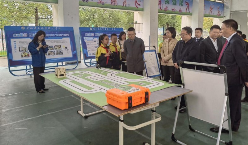 参观活动区域后,西城小学校长向领导们介绍了学校近年来开展科技教育情况及取得的成果。学校先后建立了创新发明制作室、3D打印室、无人机训练场地等,外聘专业科技教育人才,编制科教课本,开设创意编程等课程。凭借扎实的教育实践,学校学生在各级科技赛事中累计获得国家级奖项27项、省级42项、市级27项,学校先后获评“创客教育实验学校”“全国青少年编程能力等级考试试点校”“科技创新基地校”等多项荣誉。