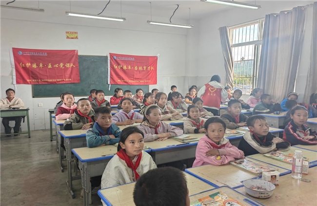 联合党支部充分发挥协同优势,在特木里镇开展立体化帮扶:护理团队为村民提供健康监测与急救培训,药学院党员深入附子种植田进行技术指导;在四且小学开展的“中医药文化进校园”活动,让300余名彝族学生沉浸式体验传统文化,为民族地区注入持续发展活力。