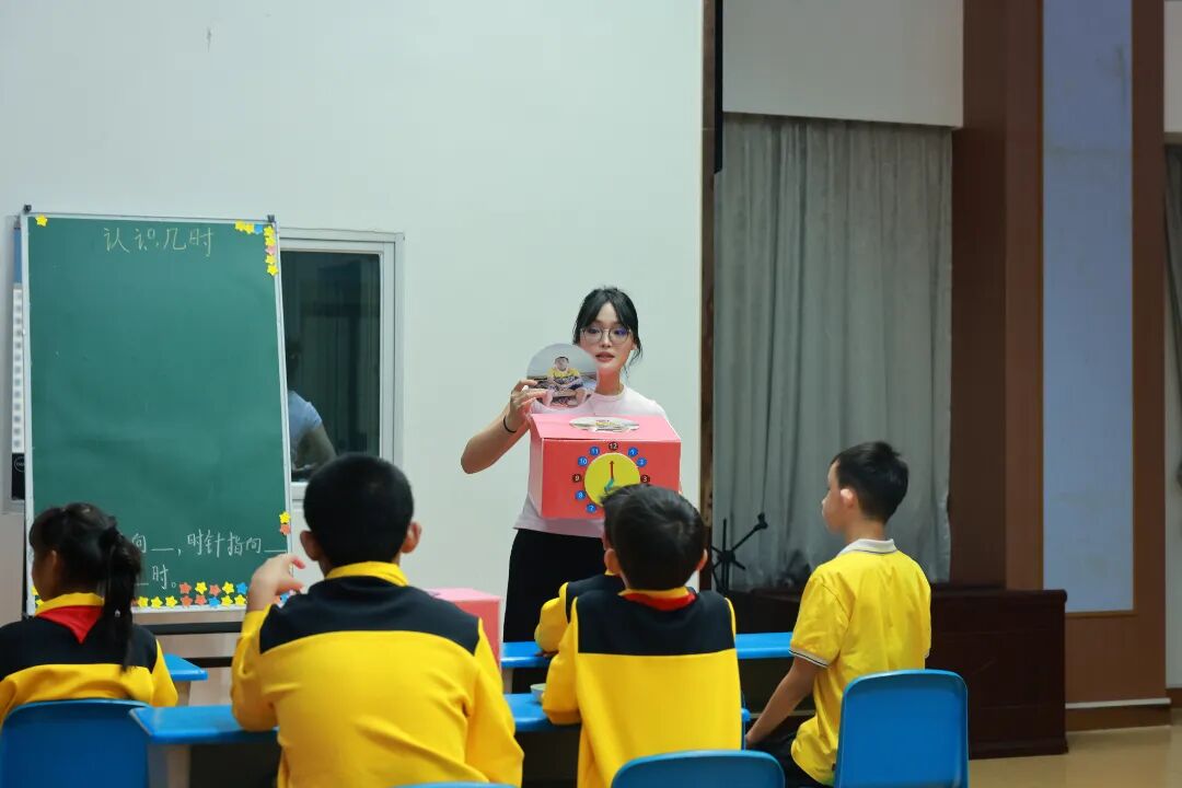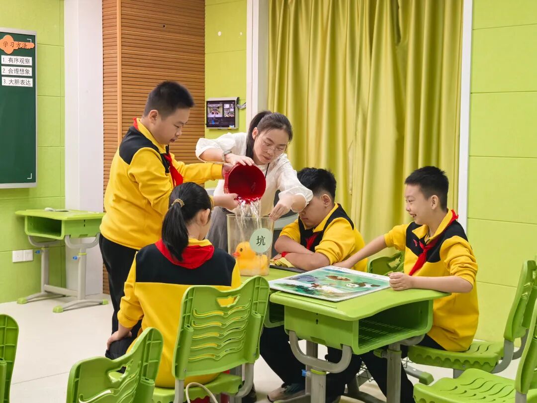 活动伊始,学员们分组观摩了四节特色公开课,涵盖生活语文、生活数学、运动保健等多个学科。宋丽老师的《认识几时》以信息技术搭建探索情境,许莉莉老师的《大扫除》聚焦语言表达训练,郭佳老师的《看图说话:想办法》注重思维培养,吴德棐老师的《双手头上向前投掷实心球——运输炮弹》则通过游戏化教学强化体能训练,四节课各具亮点,充分展现了学校精准施教的教学特色。
