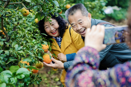 走进梨园村,处处洋溢着丰收的喜悦。“爱媛园”内,游客们亲手采摘新鲜果实,感受劳作乐趣。“以前只在超市买爱媛橙,今天亲手从树上摘,果肉更甜,还能体验采摘的快乐,太值了!”带着孩子参加活动的成都市民李斌,手里提着装满果实的果篮,脸上满是笑意。