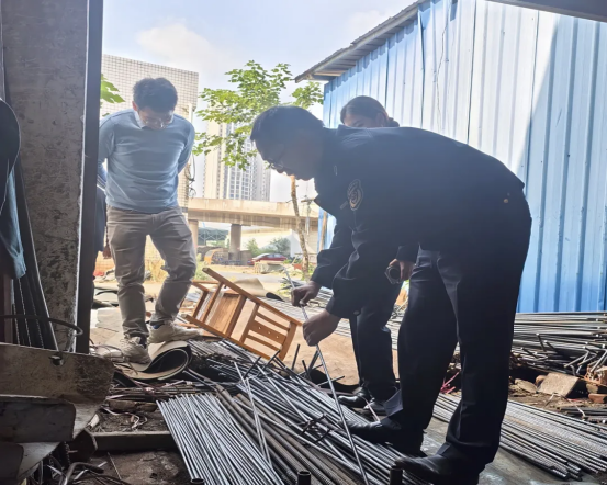 联合检查组聚焦建筑工程关键材料质量,抽查4个建筑工地,重点查看钢筋调直加工设备、钢材牌号标识、产品合格证、工业产品生产许可证、进货台账等,并随机测量钢筋产品尺寸;保温材料主要检查施工方是否落实自检、质量员检查、工序交接检查制度,产品包装上是否标明生产企业、产品名称、燃烧性能。执法人员现场抽样钢筋产品1个批次,建筑保温材料2个批次。联合检查组还就金盆岭建材市场钢筋产品开展“回头看”,检查个体经营户6家,未发现瘦身钢筋及无证生产的冷轧带肋钢筋问题。