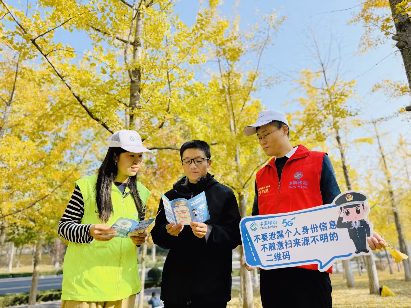 除了网络保障,反诈宣传同样是此次行动的重点。志愿者手持宣传板,向驻足游客讲解新型诈骗手法:“您看,这个‘扫码领礼品’的二维码,很可能就是诈骗入口。”志愿者们创新采用“情景演示+手册科普”模式,在银杏树下开设“移动安全课堂”,发放原创《秋日防诈指南》漫画手册100余份,并现场指导20余名市民安装国家反诈中心APP。带着孩子游园的王女士点赞道:“既能赏秋叶,又能学防骗知识,移动的服务太实用了!”