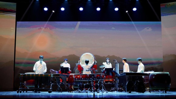 第三幕将演出推向高潮:坐乐《霸王鞭》颂扬西楚霸王盖世气概,击奏与吹奏交织,气势磅礴;行乐《满园春》尽显大唐宫廷音乐的雍容风韵与深远意境;原创跨界打击乐作品《晨钟暮鼓》,融合西安鼓乐特色打击乐器及节奏型,与现代打击乐共同勾勒出古城钟鼓和鸣的音画。