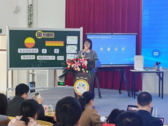 活动中,谢琴带来展示课《圆的面积》,课堂上充分运用洋葱学园数字化资源,通过交互演示、趣味练习等形式,让抽象的几何知识变得直观生动。课后,西北师范大学西部教师教育研究中心主任高小强、邢台市“姜永春小数创新工作室”主持人姜永春及教师代表、寻乌县教学研究室主任刘巧艳、“张佐凤小学数学名师工作室”主持人张佐凤等专家与参会教师展开评课交流,围绕“数智工具如何提升课堂效率”“融合教学的实践痛点”等议题深入研讨,现场氛围热烈。