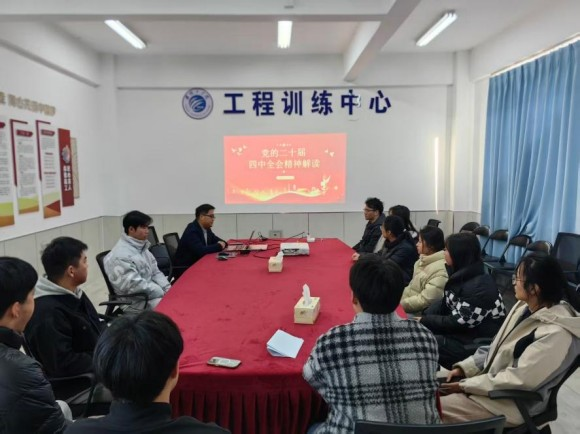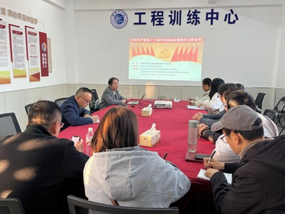 总结反思提质效,深化学习成果。为巩固学习成效、查漏补缺,学院党委在前期三级学习与现场实践的基础上,组织开展总结反思会,并特别邀请马克思主义学院副院长张琳琳作专题辅导报告。张琳琳以“系统把握全会精神,推动高校实践育人高质量发展”为主题,从“重大意义、核心要义、贯彻落实”三个维度,结合学校发展规划与学院工作实际,深入解读全会精神,并针对学院在产教融合、人才培养中存在的不足提出改进建议。会上,党员教师们结合前期学习与实践经历,逐一汇报学习成果与工作进展,反思在“将全会精神转化为教学改革举措”“服务地方产业精准度”等方面存在的问题,并制定整改清单。蒋青松在总结中强调,学习贯彻全会精神是一项长期任务,全体党员要以此次总结反思为新起点,持续深化理论学习,强化问题导向,将全会精神蕴含的创新理念、实践要求转化为优化课程体系、创新训练模式、提升服务能力的具体行动,着力培养学生实践创新能力与工程应用素养,切实把全会擘画的宏伟蓝图转化为学院高质量发展的生动实践。