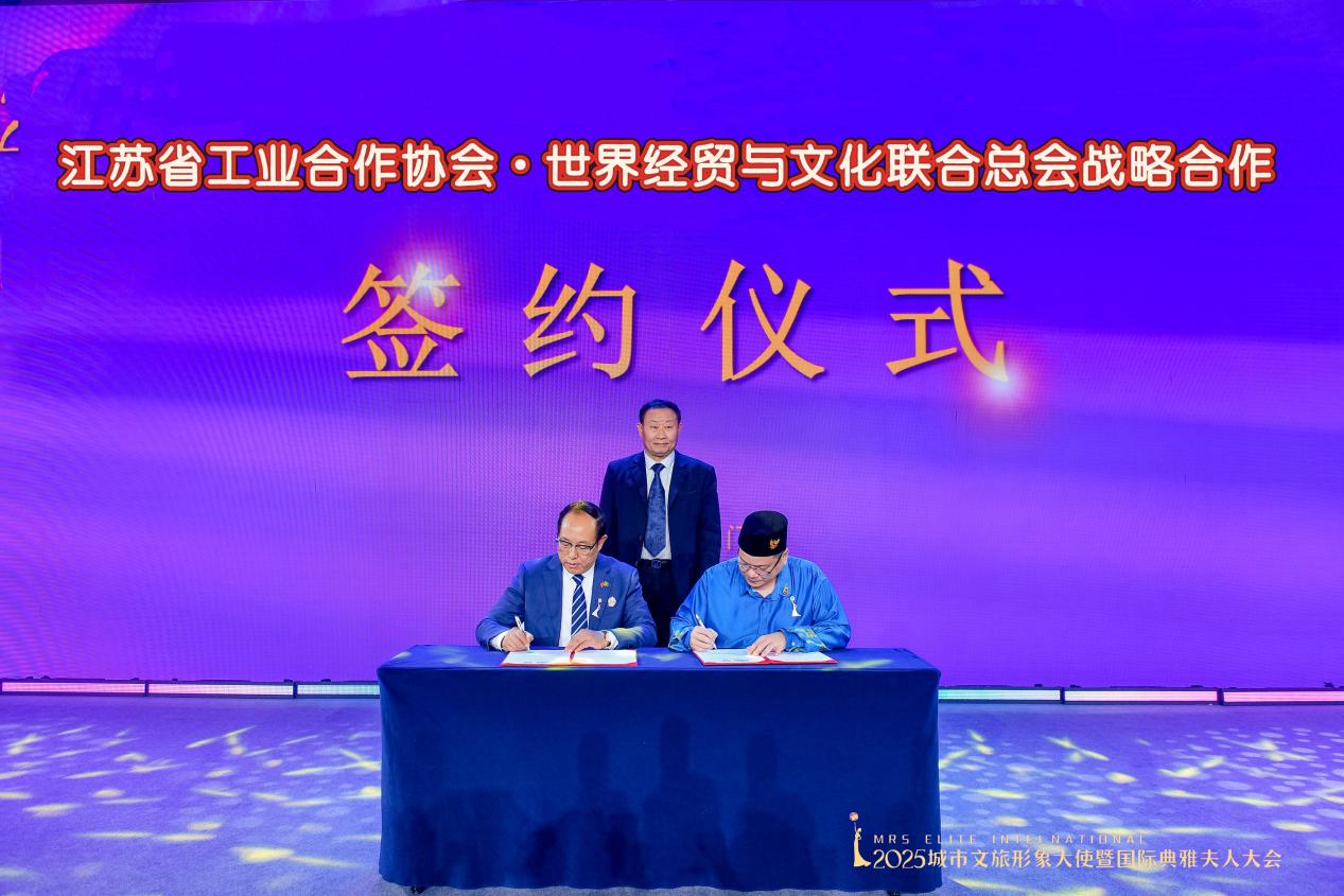 在各方共同见证下,世界经贸与文化联合总会与江苏省工业合作协会于大会现场正式签署战略合作协议,标志着“典雅品牌出海计划”进入实质性推进阶段。