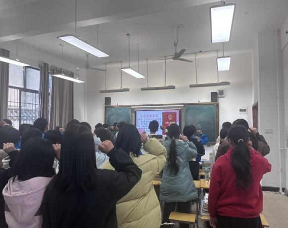 讲座开始,全体学生进行庄严宣誓:“我宣誓:忠于中华人民共和国宪法,维护宪法权威,履行法定职责……”铿锵誓言回荡在教室,进一步激发了学生对宪法的敬畏与信仰。初一(1)班学生在心得中写道:“宪法就像一棵大树,为我们遮风挡雨。作为新时代少年,我们要做宪法的忠实崇尚者、自觉遵守者和坚定捍卫者。”