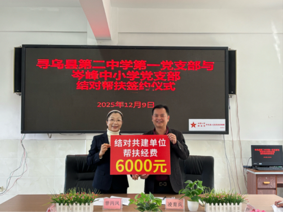 此外,寻乌县第二中学第一党支部与寻乌县岑峰中小学党支部举行了党建结对帮扶签约仪式。随后,两校联合开展主题党日活动。在活动中,两校的部分党员教师带领大家共同学习,推动党建与教育深度融合。