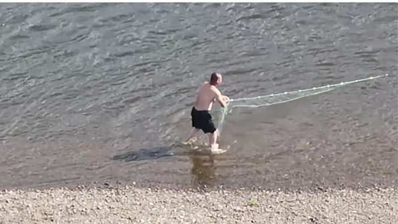 无独有偶,2025年7月31日,无人机战队在巡查另一河段时,发现河面上有两名男子使用“地笼网”进行非法捕捞。无人机战队立即启动应急处置预案,一方面持续跟踪两名男子动向,实时传输画面;另一方面,指挥中心调度地面民警根据无人机传输画面前往增援,民警到达后当场抓获两名违法嫌疑人。经查,两名违法嫌疑人长期在该区域从事非法捕捞水产品活动,利用夜间、清晨等时段,在偏远河段作案,自以为隐蔽性强,不会被发现,不料却被无人机战队精准锁定。目前,两起非法捕捞水产品案件均已依法处理,违法嫌疑人受到了相应的处罚,查获的鱼类已全部放归自然。
