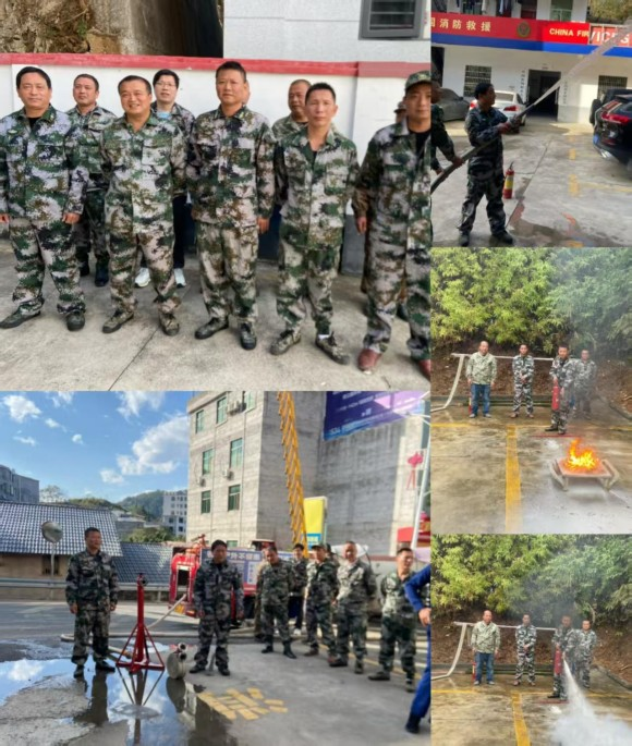 培训聚焦实战需求,坚持“讲解与实操并重”的原则。消防站专业人员首先系统讲解了火灾类型、预防措施、报警要领及疏散逃生知识。随后,重点环节转移到室外实操场地。在专业指导下,各位民兵连长逐一上手,深入学习并实践了干粉灭火器的操作诀窍——“提、拔、握、压”,面对模拟火源,熟练掌握了精准扑救初起火灾的技能。在消防水枪操作环节,参训人员从水带铺设、接口连接,到水枪姿态控制、射水方式变换,进行了连贯协同作业演练。整个过程组织严密,民兵连长们态度认真,动作逐渐从生疏到娴熟,有效提升了团队协作和器材应用能力。
