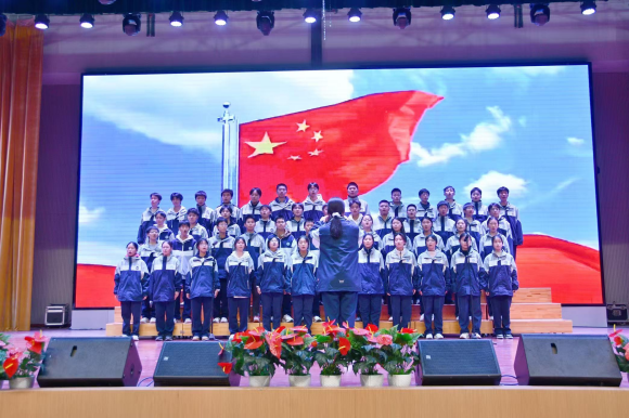 活动现场,同学们身着整齐的校服,精神抖擞,自带凳子端坐在风雨球场。他们挑选了《义勇军进行曲》《歌唱祖国》《团结就是力量》《没有共产党就没有新中国》《强军战歌》《保卫黄河》等脍炙人口的歌曲作为比赛曲目。赛前,同学们进行了充分的准备。比赛时,同学们还展示了红旗、字幅、国旗、爱心贴纸等各类道具。演唱过程中,同学们跟随指挥的节拍,用或激昂、或悠扬、或深沉的旋律,歌唱祖国,赞颂共产党,讴歌青春活力。嘹亮的歌声直冲云霄,掌声雷动,同学们的精神也得以升华。