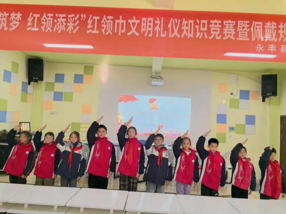 竞赛分班级、年级、校级三个阶段,校赛设置文明礼仪知识抢答和佩戴红领巾、敬队礼规范展示三大环节。抢答环节中,选手们反应迅速、举手踊跃,围绕校园、家庭、社会公共及少先队基本礼仪知识展开激烈比拼,现场气氛紧张又热烈;敬队礼规范展示环节,队员们精神抖擞,佩戴红领巾、敬队礼的动作标准规范,充分展现了少先队员的良好风貌。