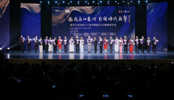 12月17日,“拥抱长江黄河引领时代新声——长江黄河沿线十八省市跨越2026朗诵音乐会”在南京保利大剧院倾情上演。陈铎、瞿弦和、狄菲菲等全国朗诵名家与各省朗诵艺术家齐聚南京建邺,以声传情、以诵为媒,共同呈现了一场贯通江河文脉、融汇家国情怀的高水平朗诵艺术盛宴。